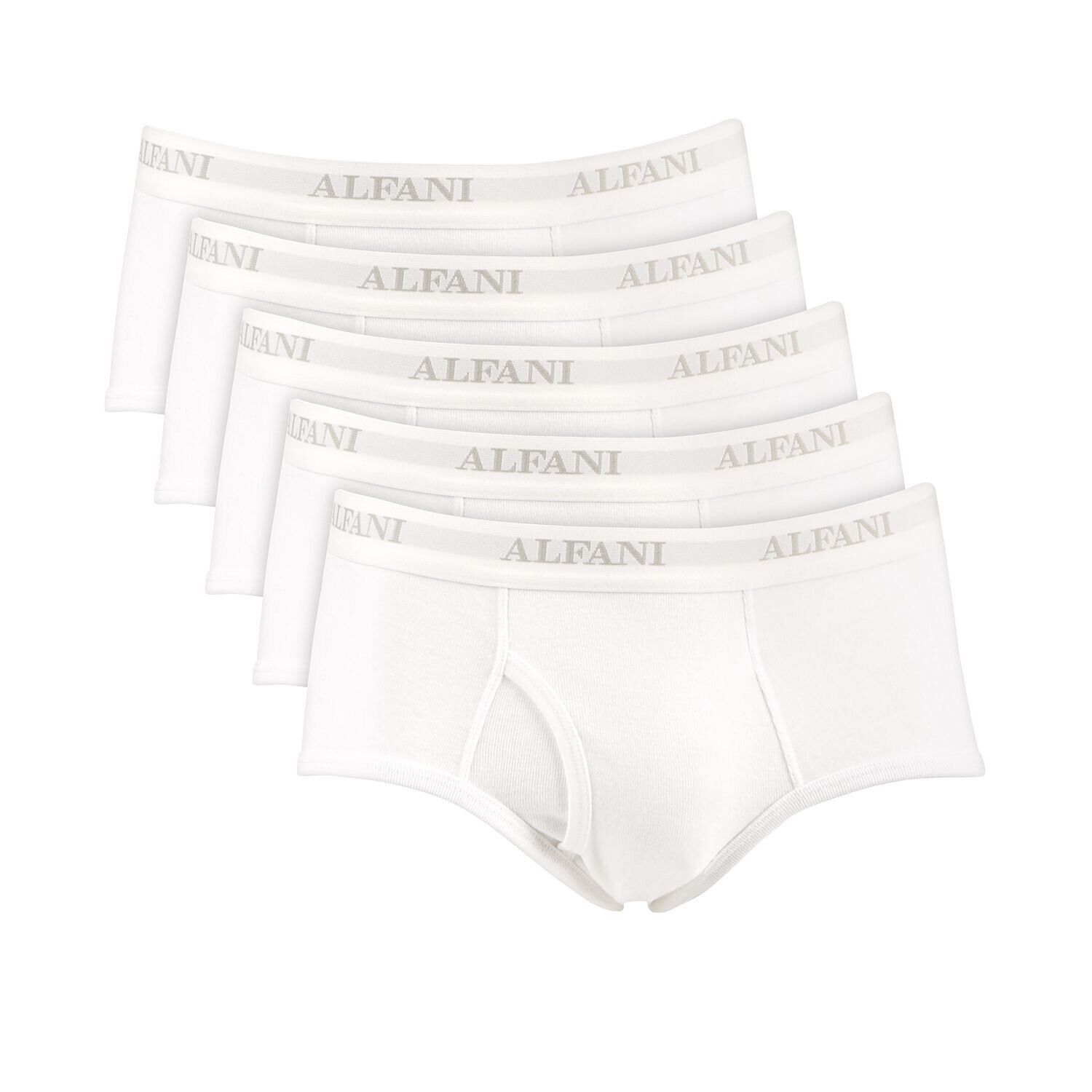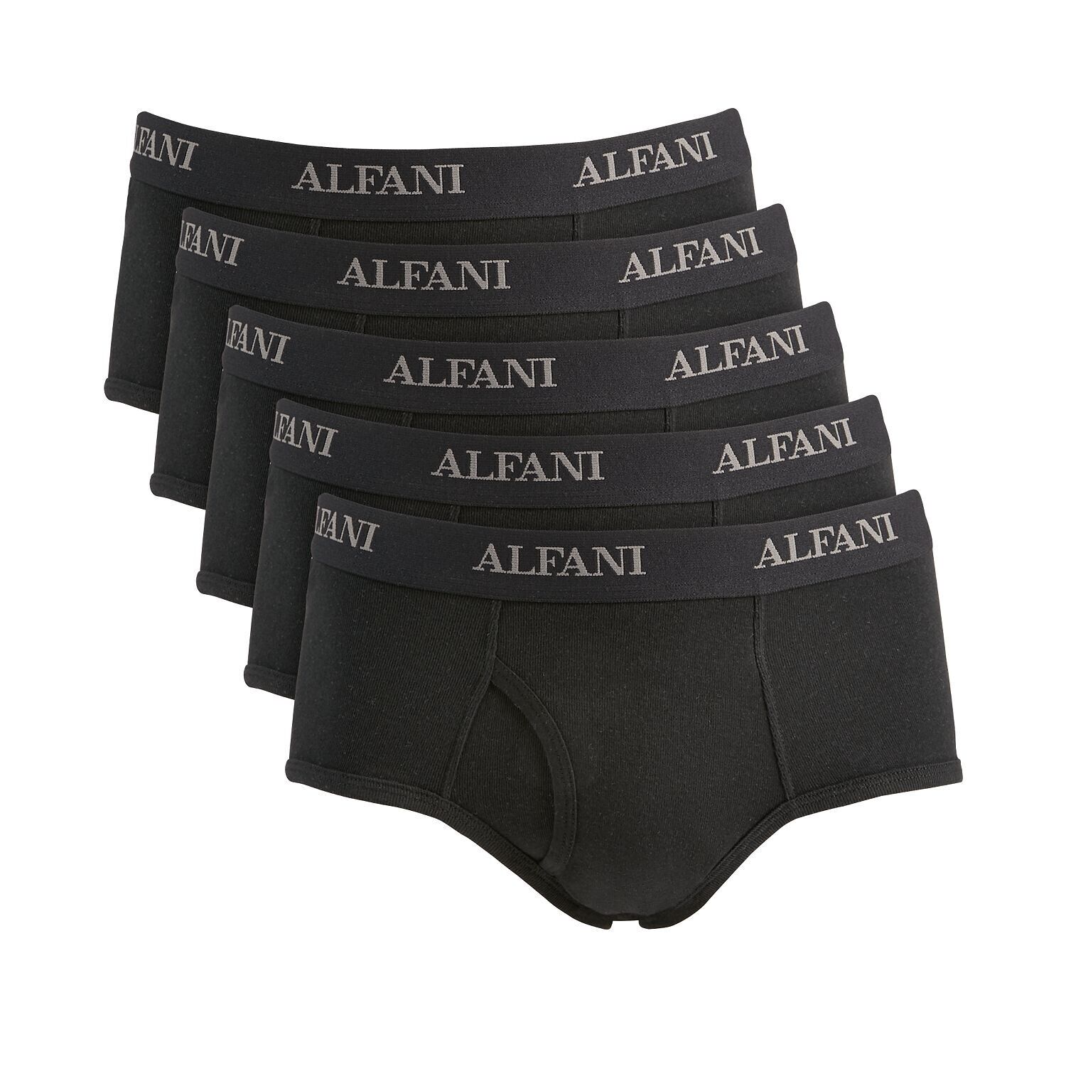 Upgrade your underwear with these stylish briefs from Alfani, featuring an elastic waistband with a repeating logo pattern and a comfortable contoured pouch for extra support. .