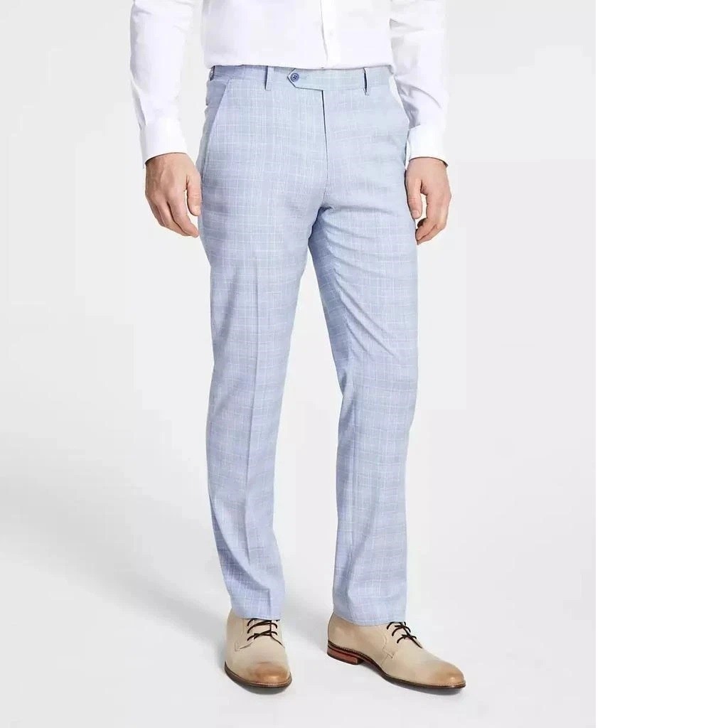 Alfani Men’s Slim-Fit Stretch Solid Suit Pants Blue Plaid B4HP $135