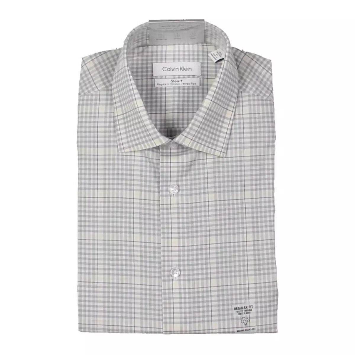 Calvin Klein Men’s Regular-Fit Stretch Check Dress Shirt Grey B4HP