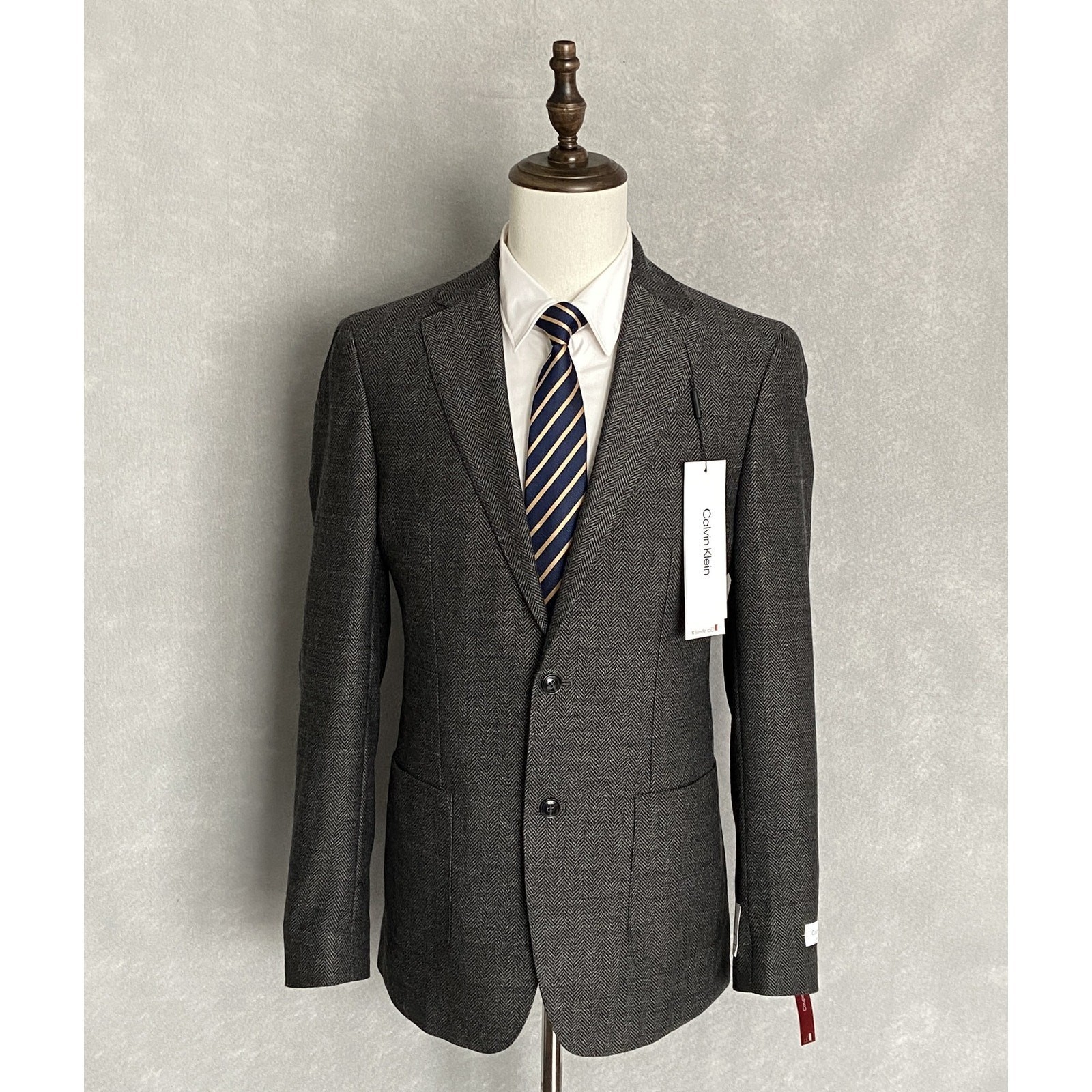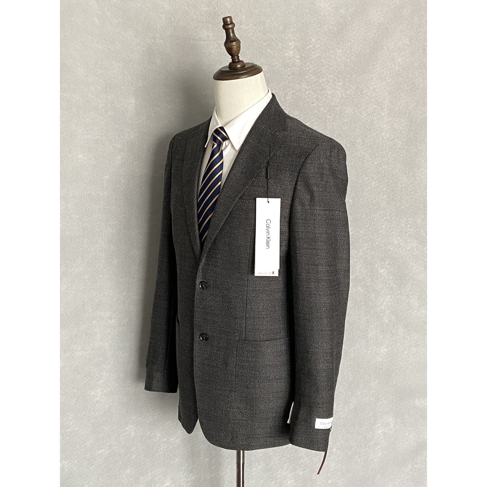 Calvin Klein Men’s Slim-Fit Wool Woven Herringbone Sport Coat Charcoal B4HP $375