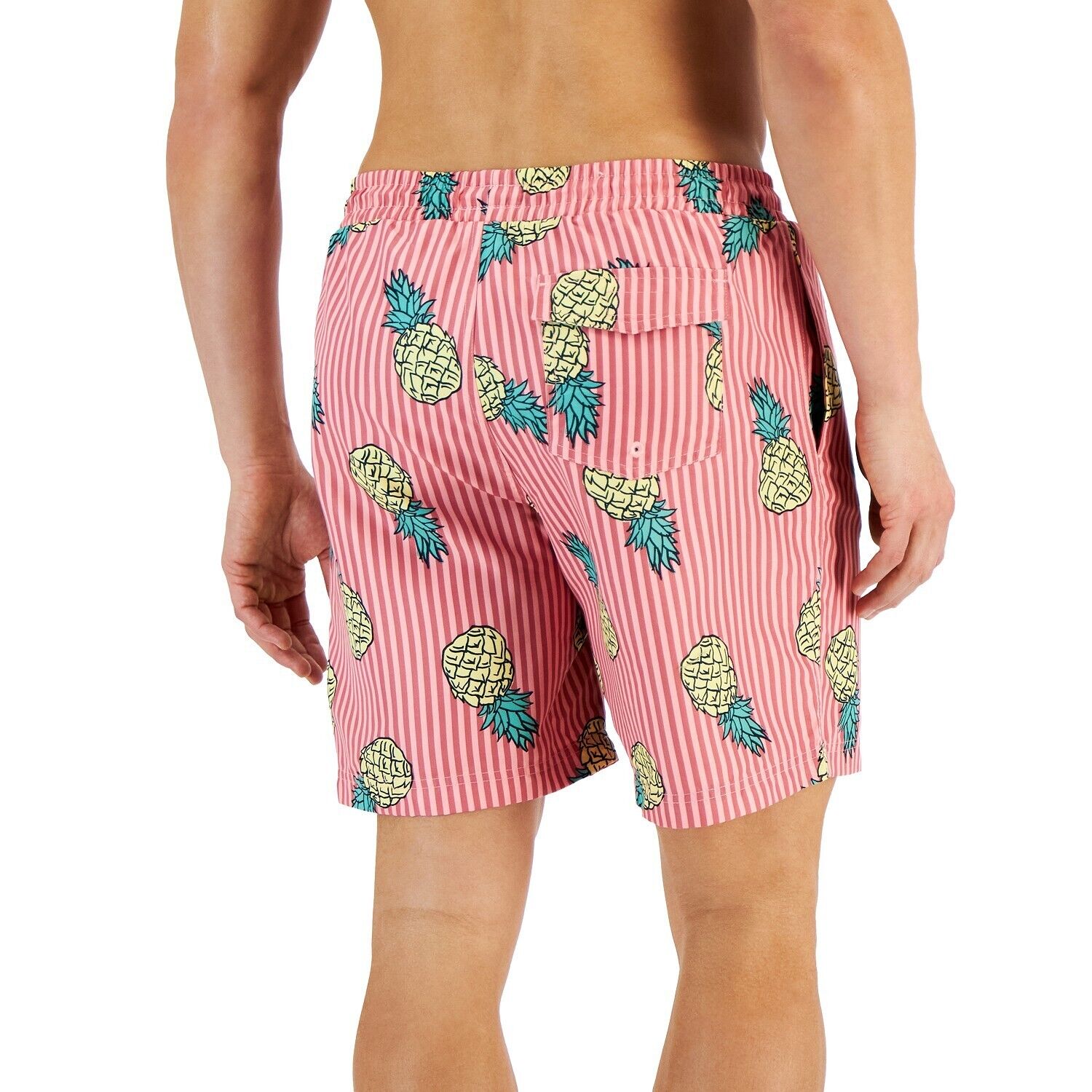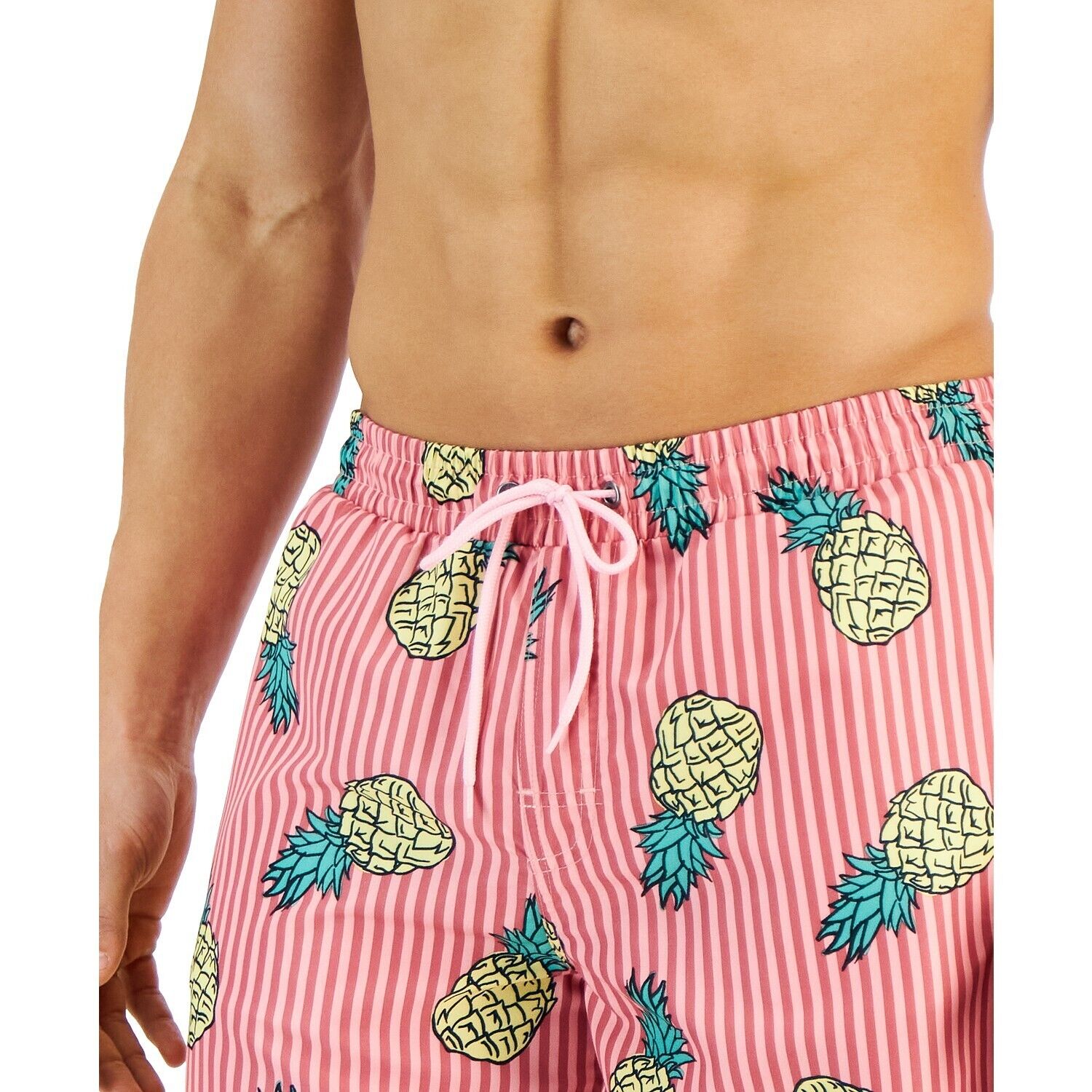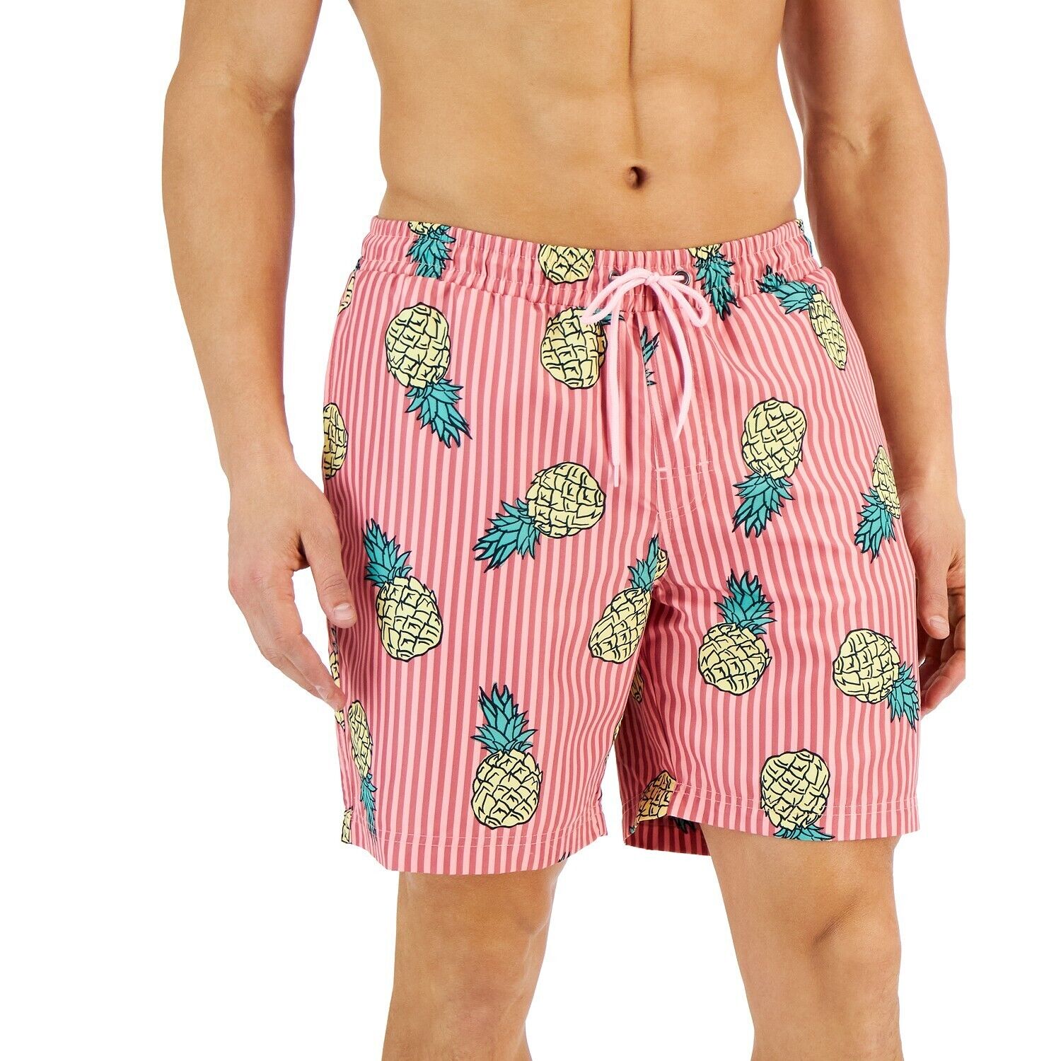 Club Room Men’s Pineapple Stripes Swim Trunks Pink Sky XXL B4HP