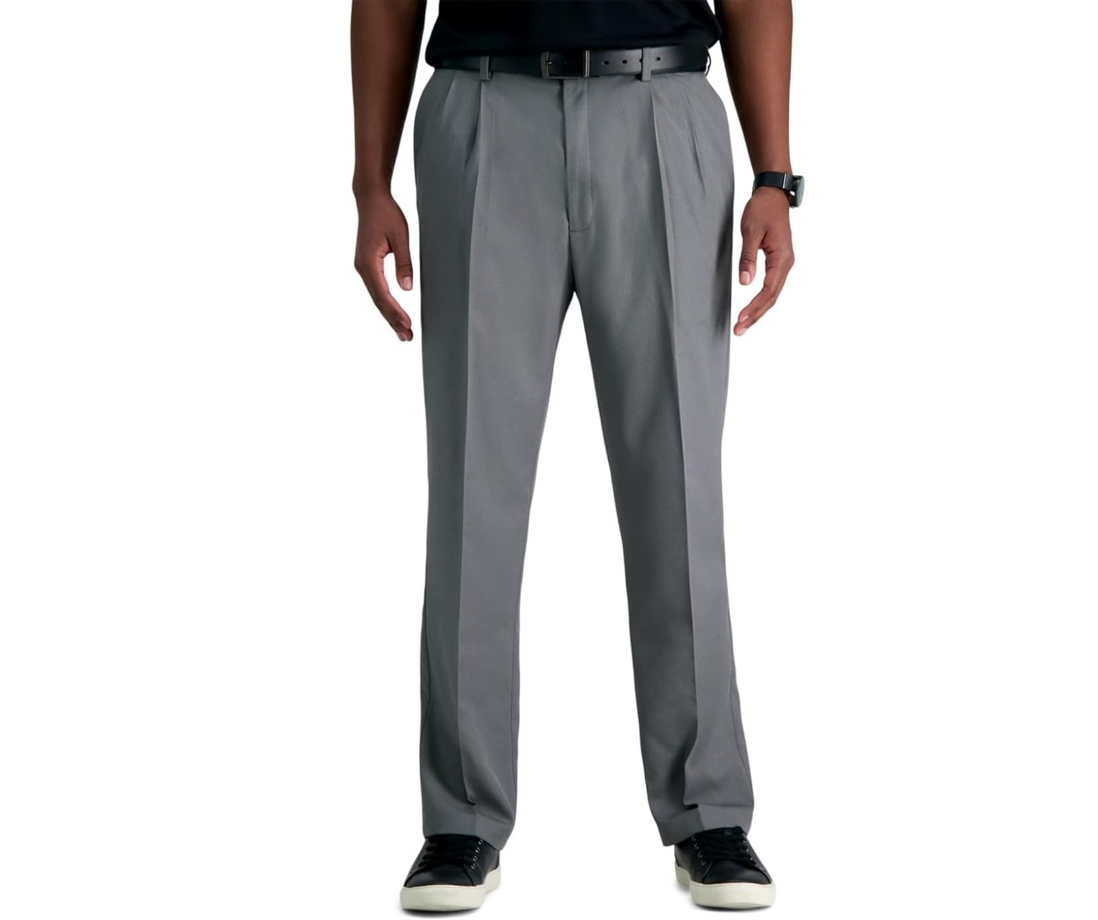 Bring a classic look with upgraded comfort into the office with the timeless tailoring, pleated-front styling and non-iron, moisture-wicking performance technology of these Cool 18 PRO stretch dress pants from Haggar.