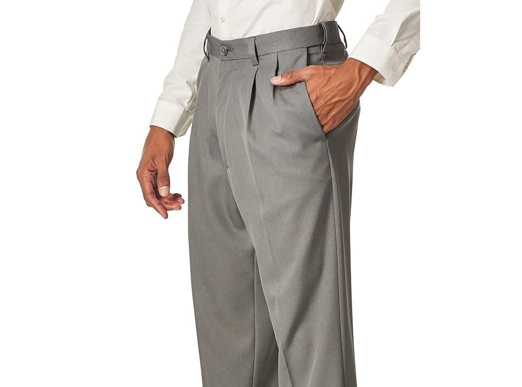 Haggar Men’s Cool 18 PRO Classic-Fit Waist Pleated Dress Pants Grey 38×34 B4HP