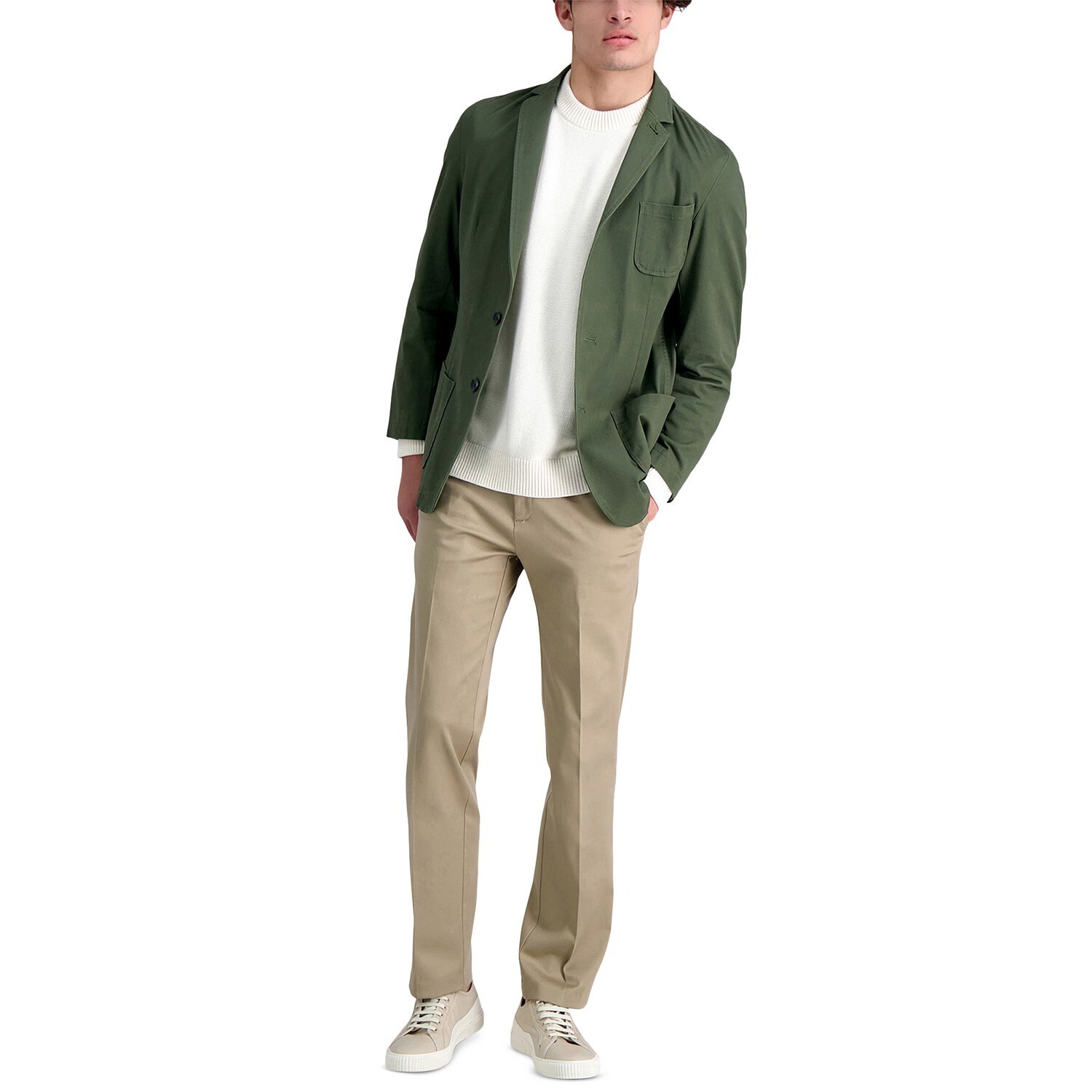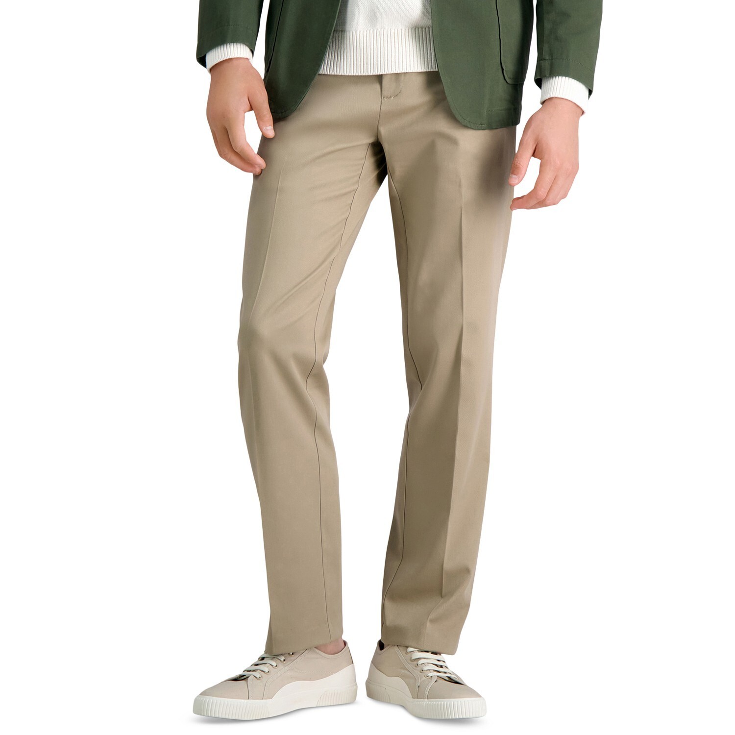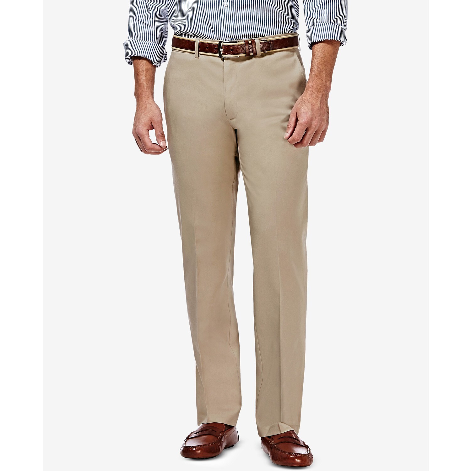 Offering a non-iron design and a comfortable straight fit, these Haggar premium stretch flat-front pants are a smart choice for out-of-town meetings and long days at the office.