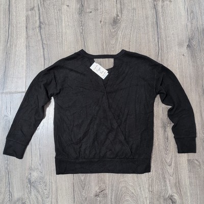 The laid-back hacci-knit silhouette of this Hippie Rose top is finished with a V-shaped cutout at the crossover back.