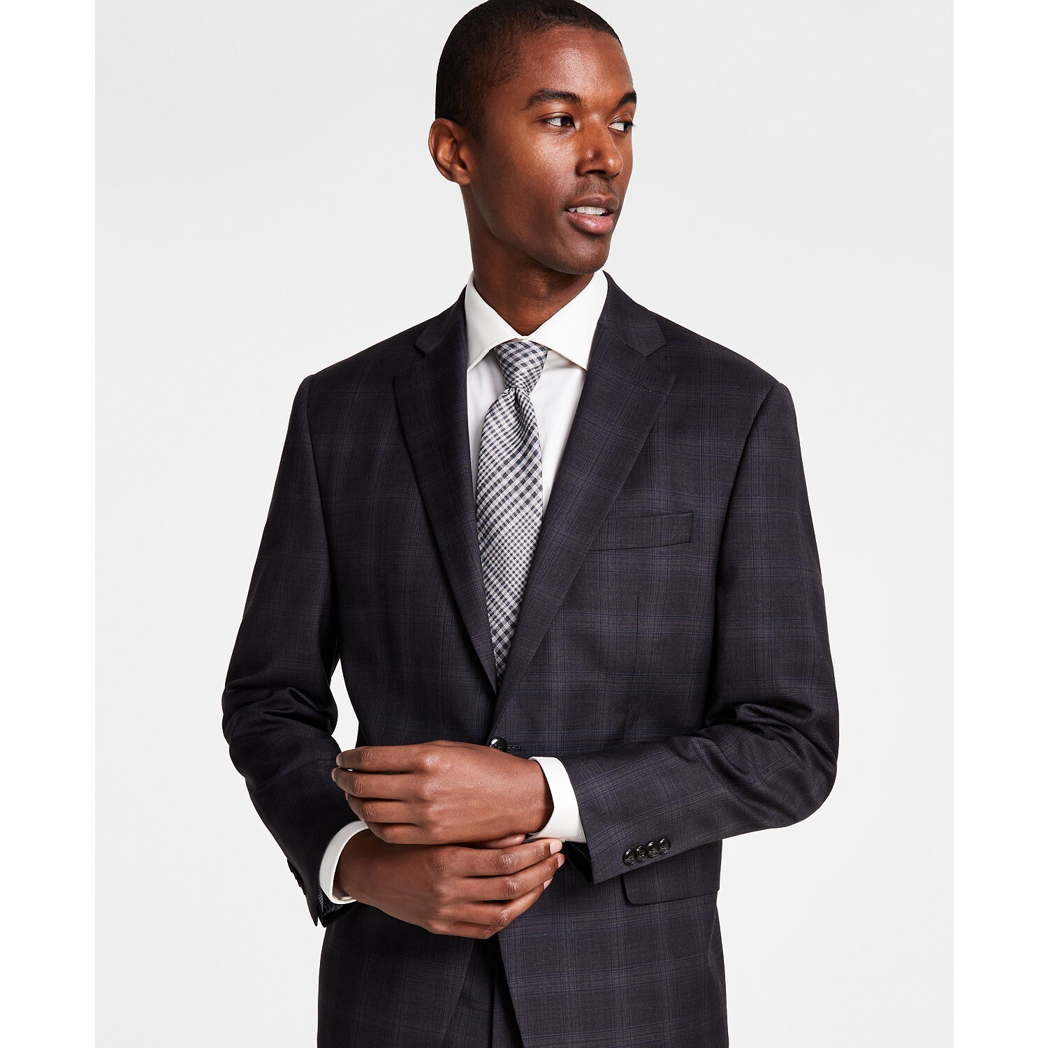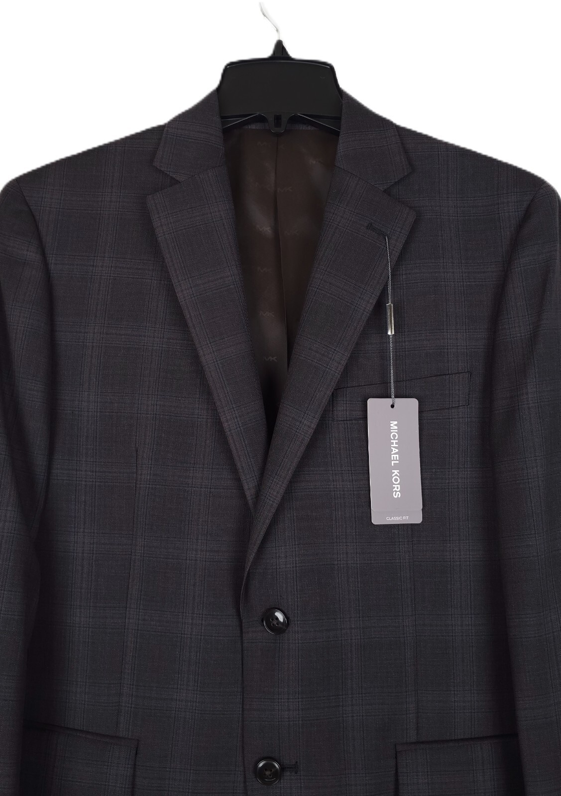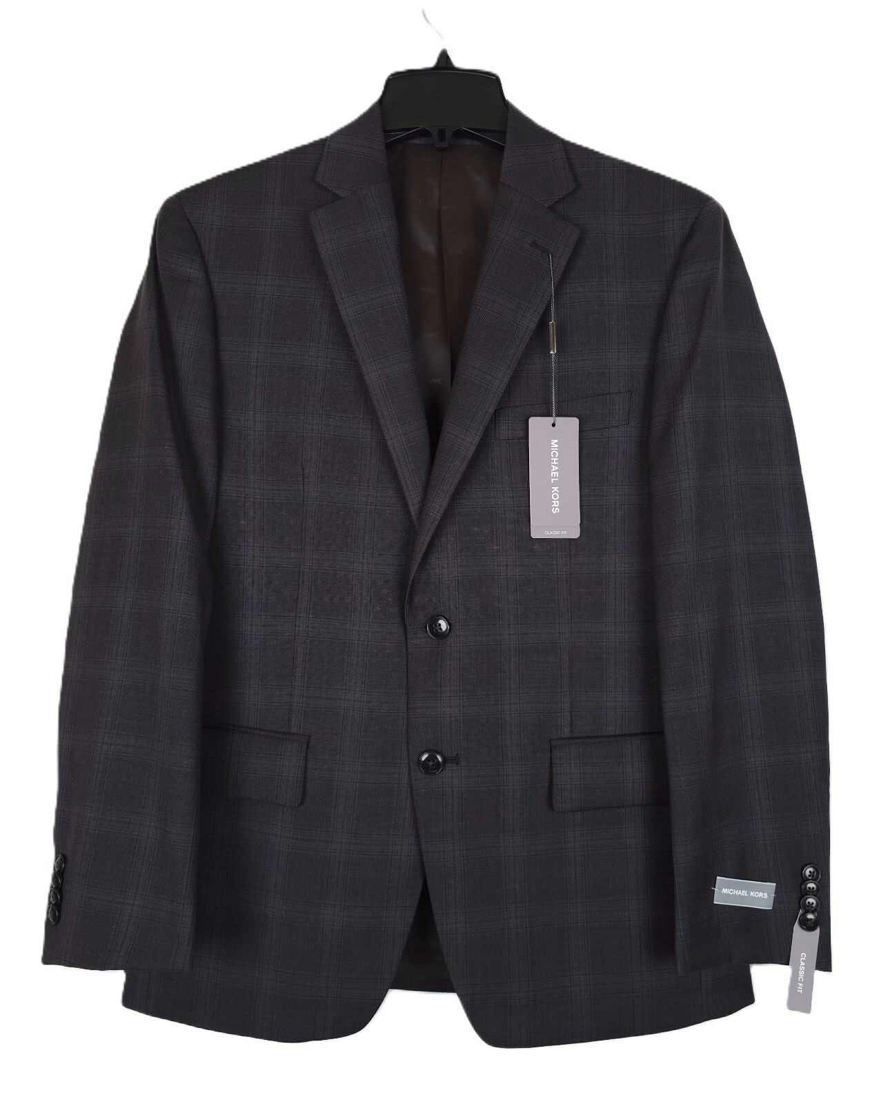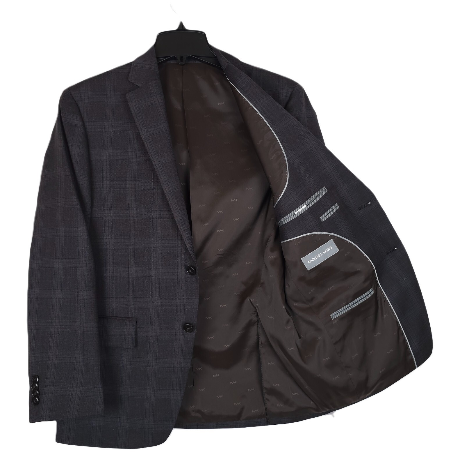 A stylish professional look starts with this suit jacket from Michael Kors. With stretch for comfort, it offers a classic fit and subtle plaid with understated texture.