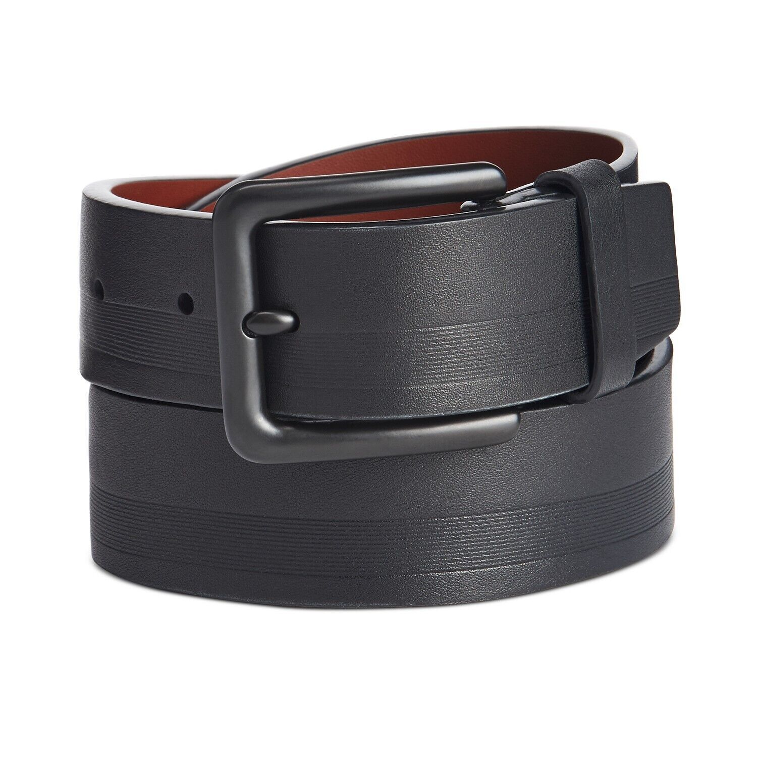Original Penguin Men’s Faux Leather Embossed Casual Belt Black B4HP