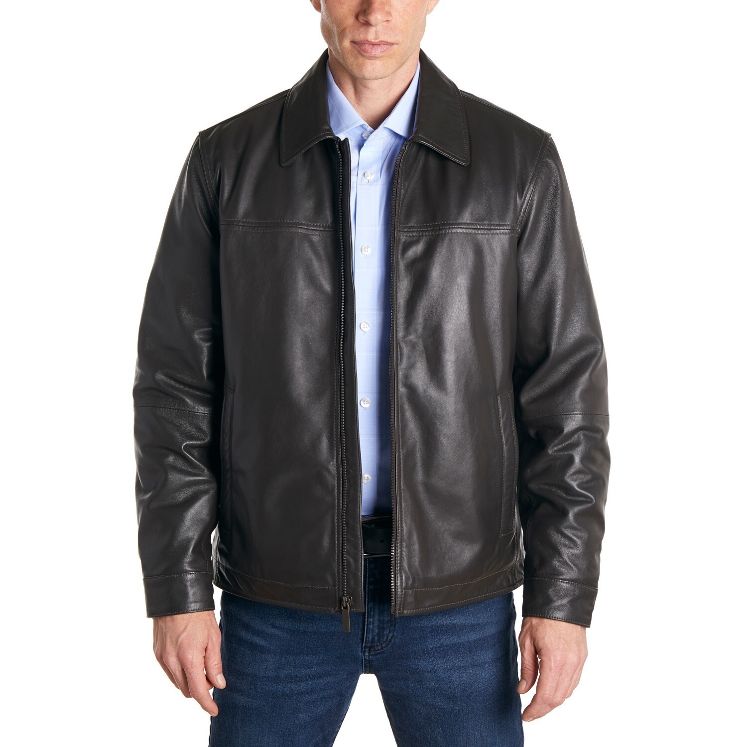 Perry Ellis Men’s Classic Leather Jacket Black M B4HP $525