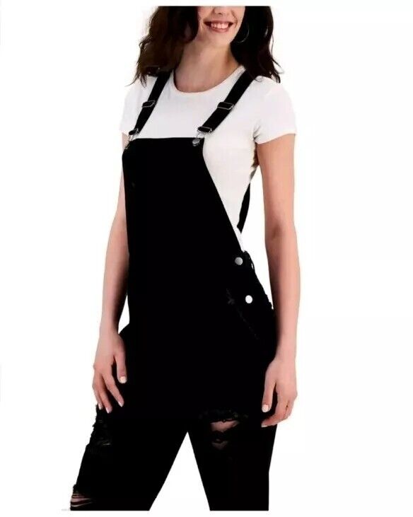 Tinseltown Rigid Ripped Overalls with Button Closures Black M B4HP