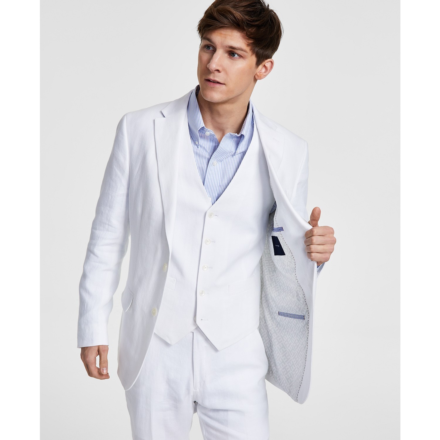 Tommy Hilfiger Men’s Modern-Fit Flex Stretch Linen Suit Jacket White B4HP $360