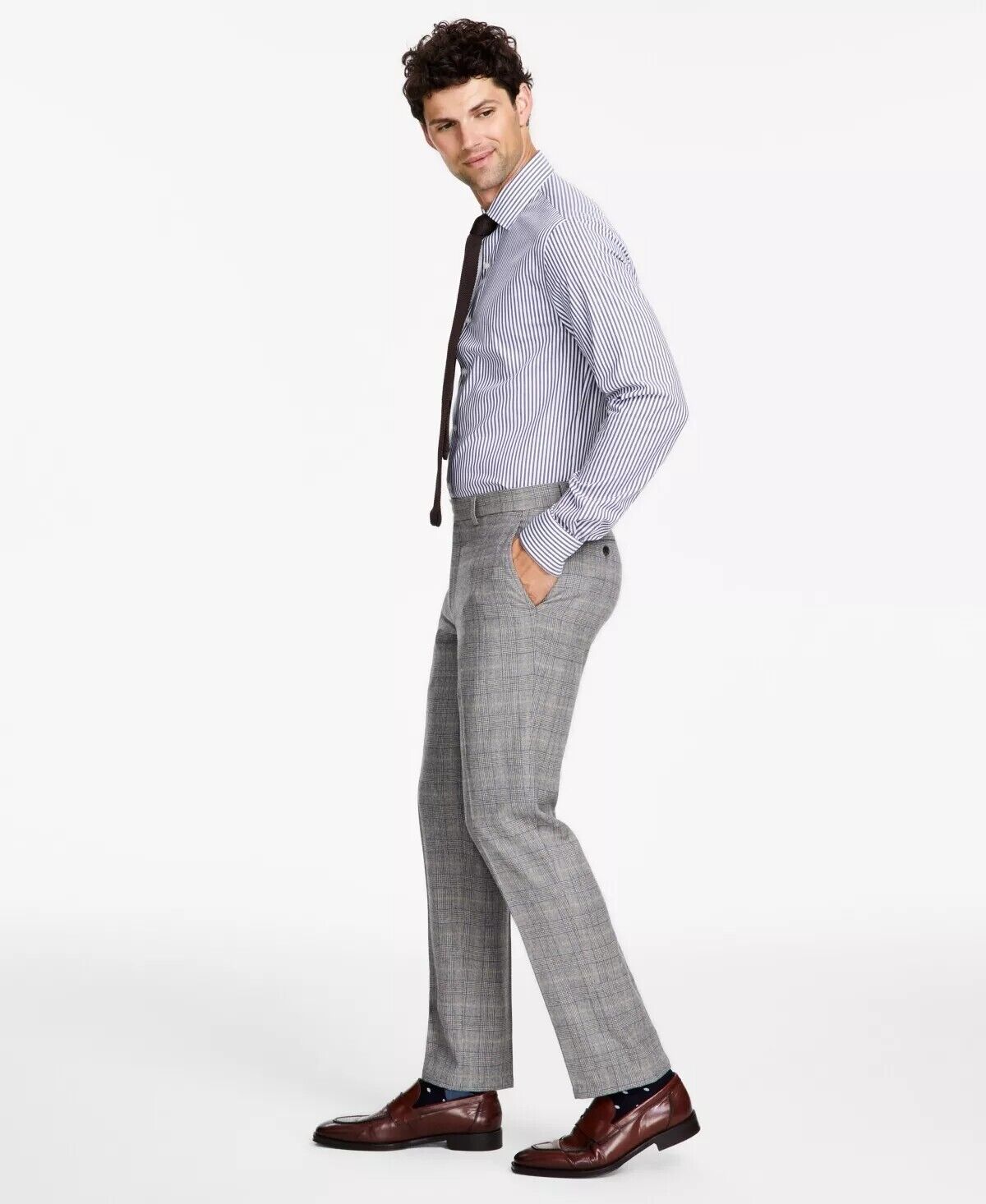 Tommy Hilfiger Men’s Modern-Fit Stretch Wool Suit Pants Camel Plaid 40×32 B4HP
